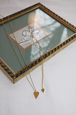 Le collane "Cuore Antico" sono formate da due piccoli cuori intagliati a mano, dalla forma allungata e retrò. Questi ciondoli possono essere simbolo di amicizia e affetto e possono essere anche incisi con la lettera dei propri testimoni. Possono essere realizzate sia in argento che in ottone e saranno un bellissimo ricordo da indossare con amore.